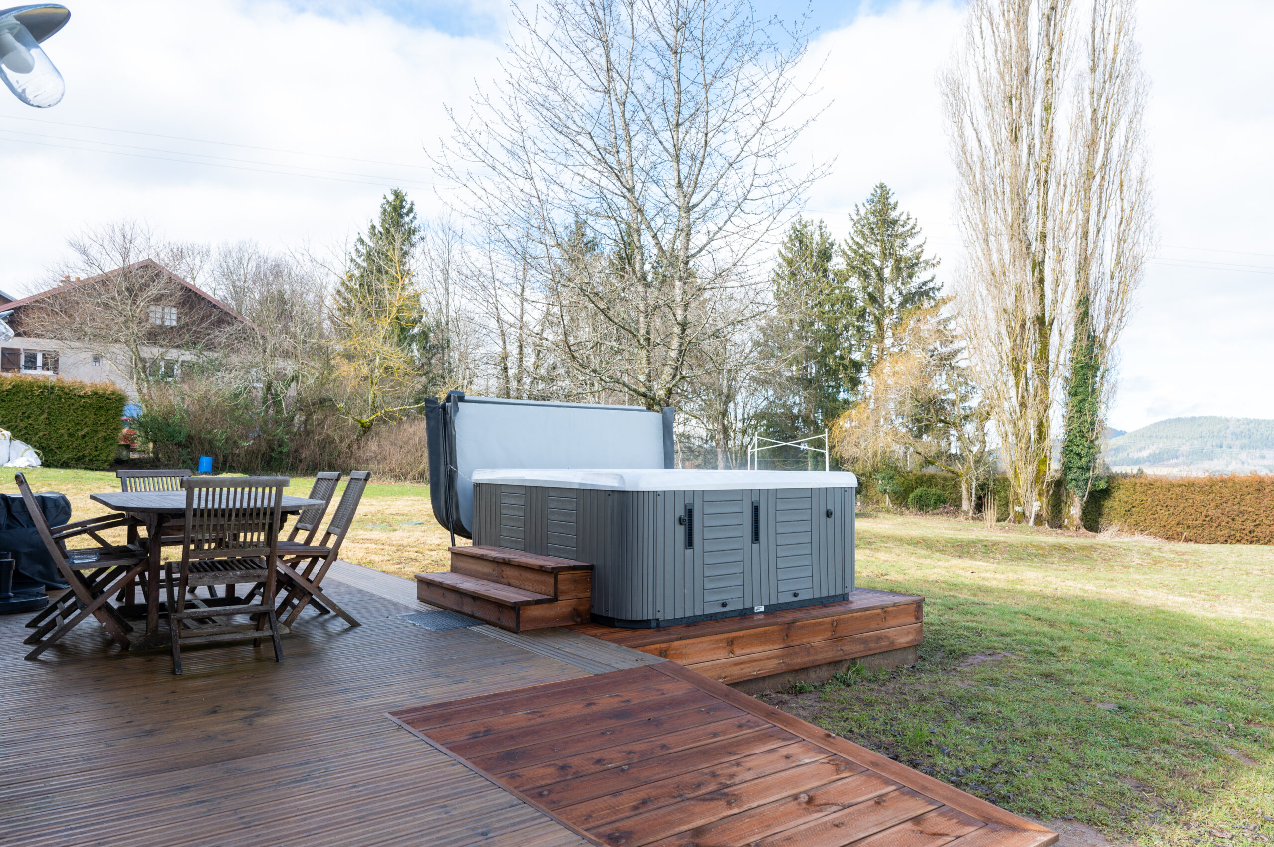 Le chalet possède son propre jacuzzi 6 places. Parking privé, éclairage automatique et accès PMR.